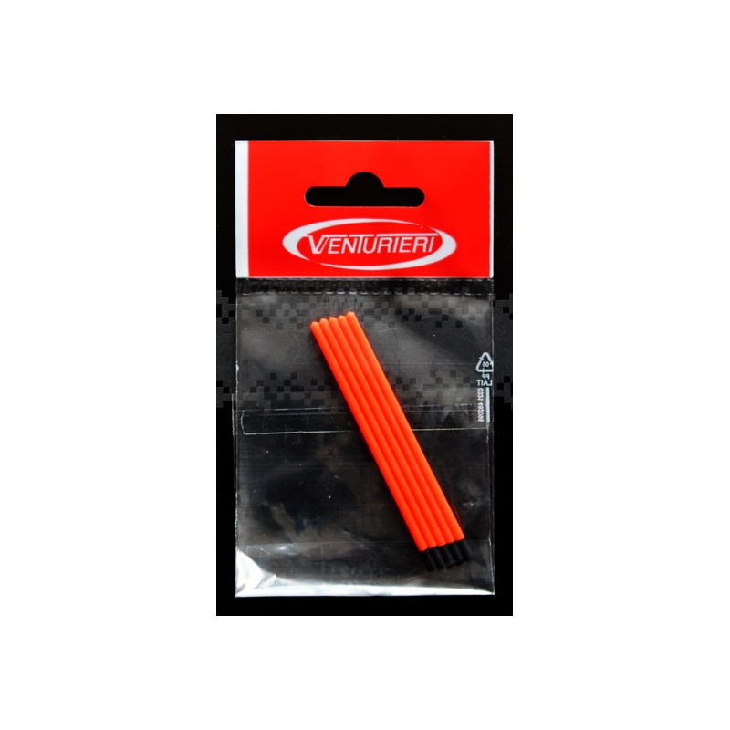 Antenne cave per galleggianti da pesca ,la cavità all'interno permette alla luce di filtrare rendendole maggiormente visibili, diametro interno 1,7mm ed esterno 2,2mm per una lunghezza di 70mm,disponibili nei colori rosso e giallo fluorescente,in confezione da 5 pz.