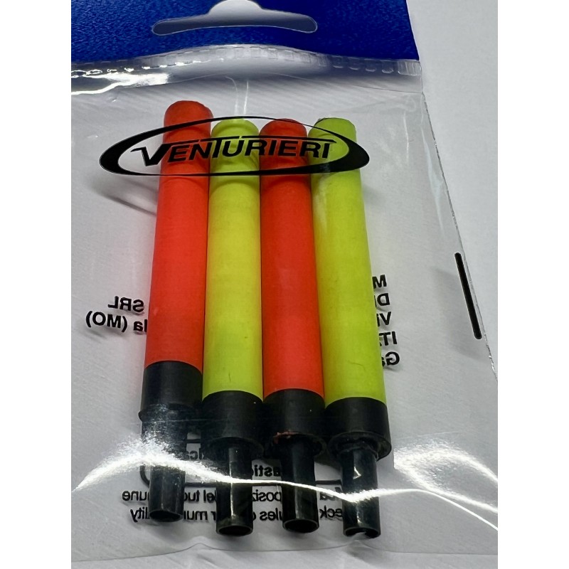 Antenne cave per galleggianti da pesca,diametro 8 mm con boccola interna per inserimento di un'antenna starlight . Nella parte inferiore c'è una riduzione di 4,5 mm per l'inserimento sui galleggianti porta starlight di 4,5 mm. Adatta a tutti i galleggianti con boccola porta starlight da 4,5 mm. Ideale per la pesca in mare ed in acqua dolce a lunghe distanze con galleggianti di taglie importanti; la cavità all'interno permette alla luce di filtrare rendendole maggiormente visibili, diametro 8mm per una lunghezza di 65 mm circa, disponibili nei colori rosso e giallo fluorescente,in confezione da 4 pz (2+2). Adatta per la pesca notturna perchè l'antenna fa le veci di una 'prolunga' , rendendola ideale per le acque mosse, con onde facendola rimanere sempre ben visibile.