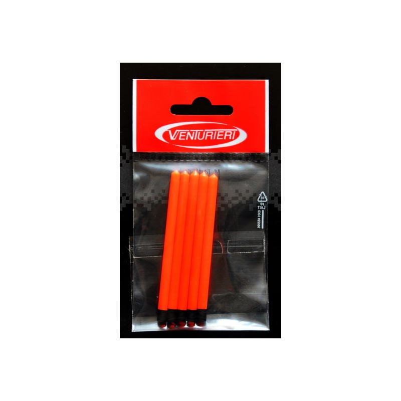 Antenne cave per galleggianti da pesca ,la cavità all'interno permette alla luce di filtrare rendendole maggiormente visibili, diametro interno 4mm ed esterno 4,5mm per una lunghezza di 70mm,disponibili nei colori rosso fluorescente,in confezione da 5 pz. Questo tipo di antenna può essere inserita su un galleggiante porta starlite di diametro 4,5 mm.