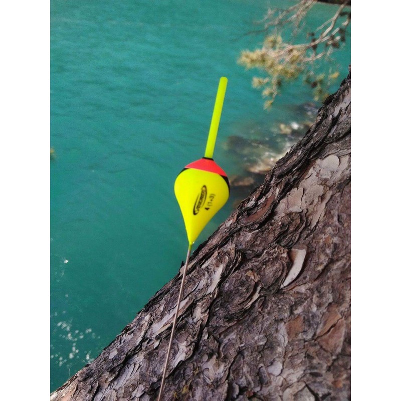 Galleggiante adatto per tutte le tipologie di pesca,in particolare per la pesca in mare con antenna in plastica ben visibile con deriva in acciaio inox , è possibile intercambiare l'antenna normale con una starlight di 3 mm per la pesca notturna, passaggio del filo all'interno del tubicino. La deriva in acciao inox ha dei diametri differenti a seconda delle grammature e fa le veci di una zavorra, come la deriva delle barche a vela. Sul galleggiante è riportata la grammatura TOTALE del galleggiante e a fianco è riportata la portata che ha il galleggiante sulla lenza (es: gr 2 1+1 ). E' un galleggiante estremamente STABILE e SENSIBILE e predilige le acque mosse o correnti Conf 1 pz . Disponibile nelle seguenti grammature :