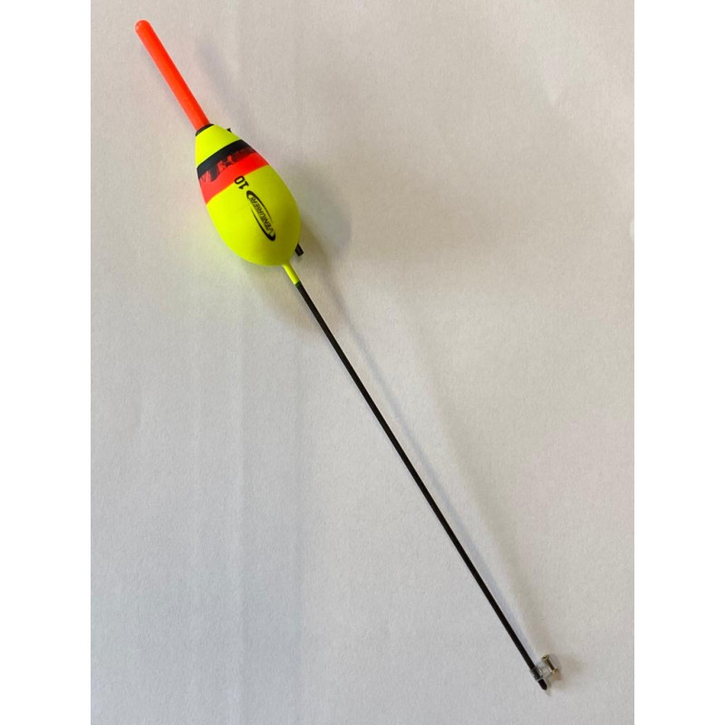 Galleggiante da pesca con deriva in fibra di vetro e antenna portastarlight 4,5 mm, alta visibilità. Usato prevalentemente in mare o in acque molto profonde. Alla deriva va applicato un gommino in silicone con all'interno un rivetto in ottone (NOSTRO BREVETTO) per facilitare lo scorrimento della lenza. Molto resistente grazie al passaggio del filo all'interno del bulbo del galleggiante tramite un tubo in plastica.